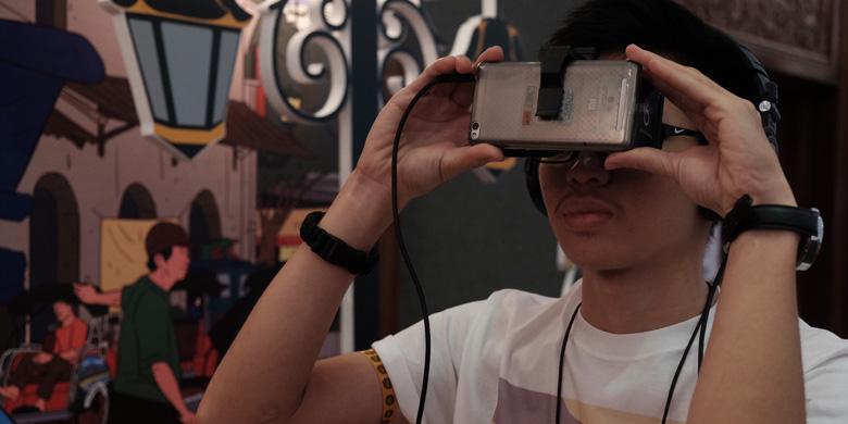 Selanjutnya, pengguna tinggal mengintipnya dari kacamata itu. Gerakkan kepala ke berbagai arah untuk melihat berbagai cerita yang disajikan dan pakai headphone untuk mendengarkan musik latarnya.